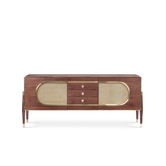 Κομψή με λεία επιφάνεια, η vintage κονσόλα δείχνει ξεκάθαρα τις σκανδιναβικές σχεδιαστικές της ρίζες. Φτιαγμένη από ξύλο καρυδιάς, μοιάζει περισσότερο με ένα τεράστιο ραδιόφωνο εποχής παρά έπιπλο.