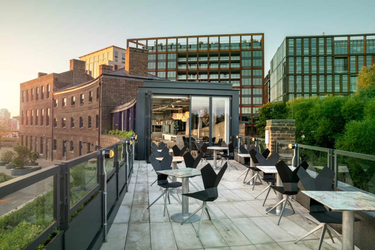 Φυσικά, το βράδυ συνεχίζεται στον επάνω όροφο και την εξωτερική ταράτσα του εστιατορίου με τη μοναδική θέα στις όχθες του καναλιού Regent’s και τους δρόμους της συνοικίας King’s Cross. Εκεί ένας κατάλογος με μια ευρεία γκάμα κρασιών της Μεσογείου και της Ευρώπης είναι στη διάθεση των επισκεπτών.