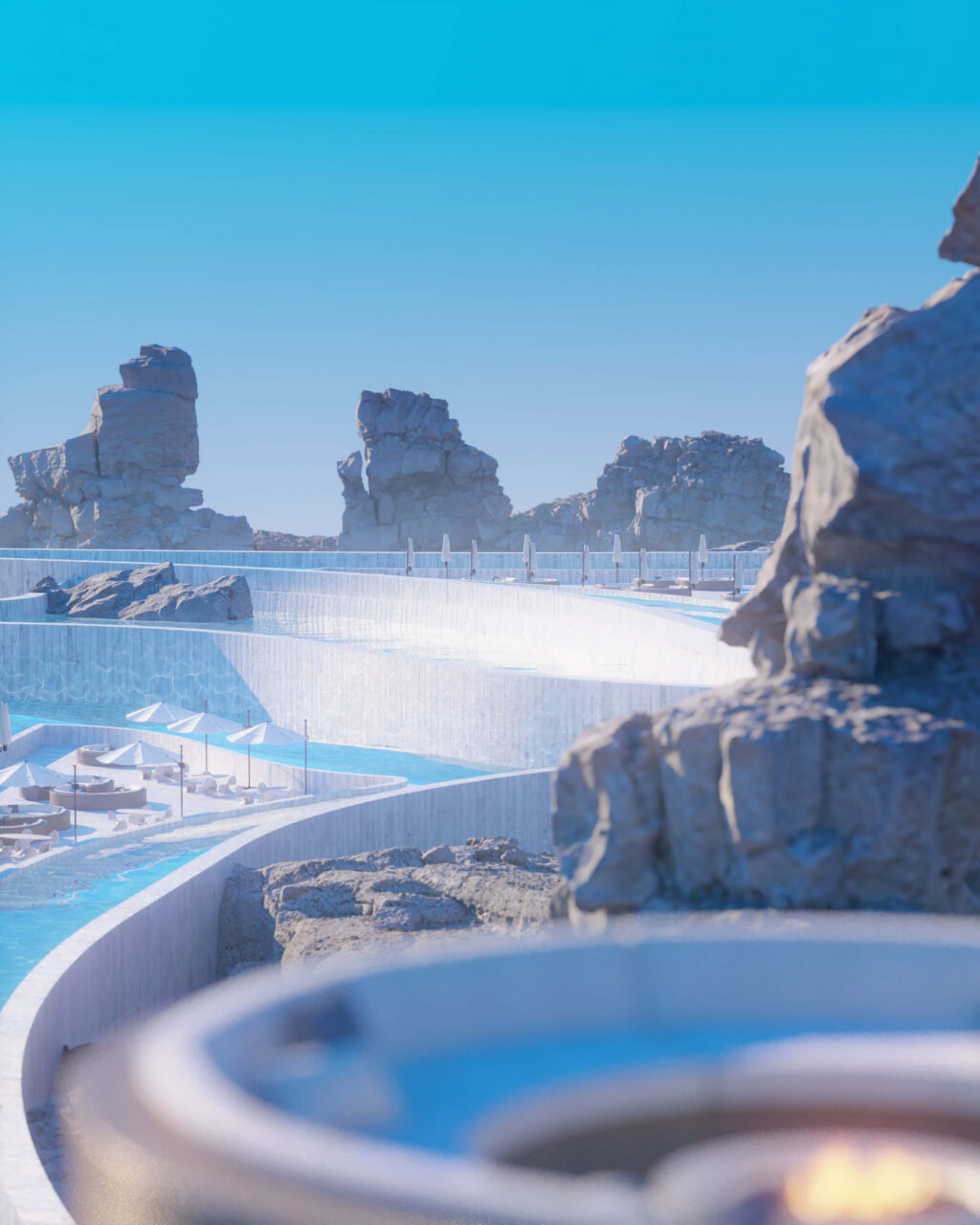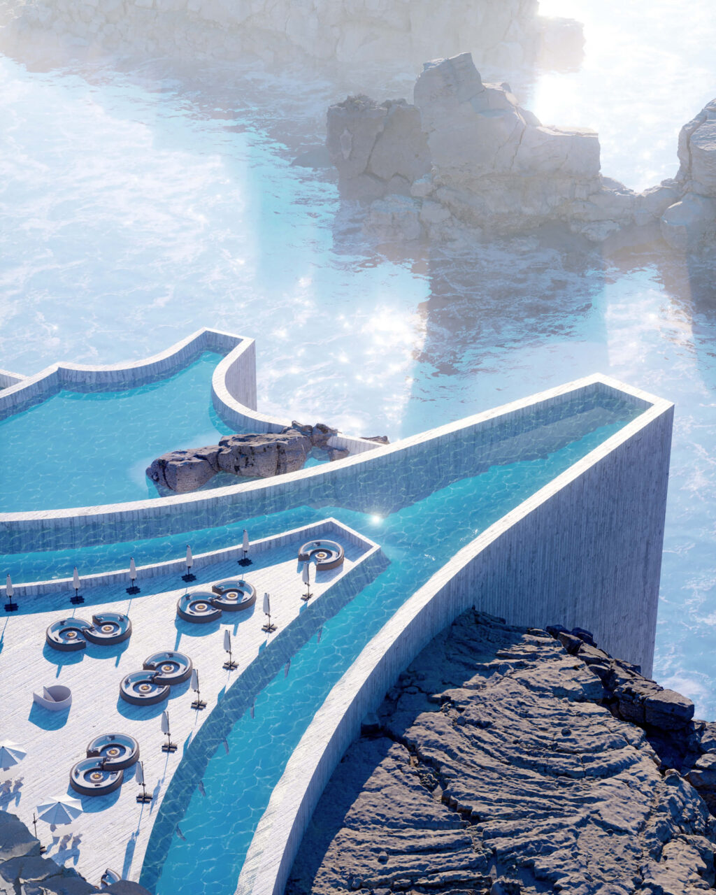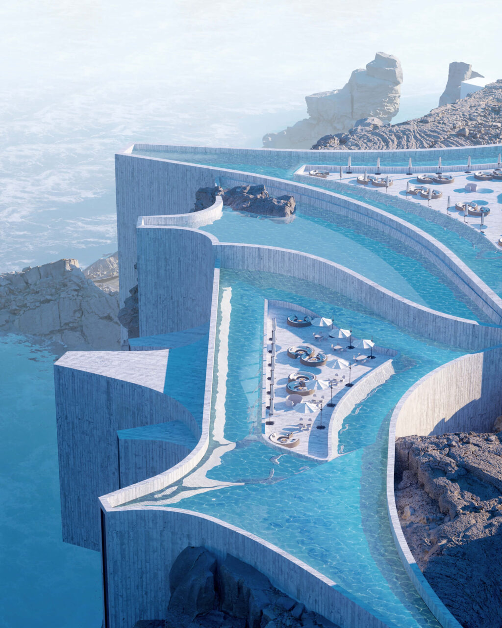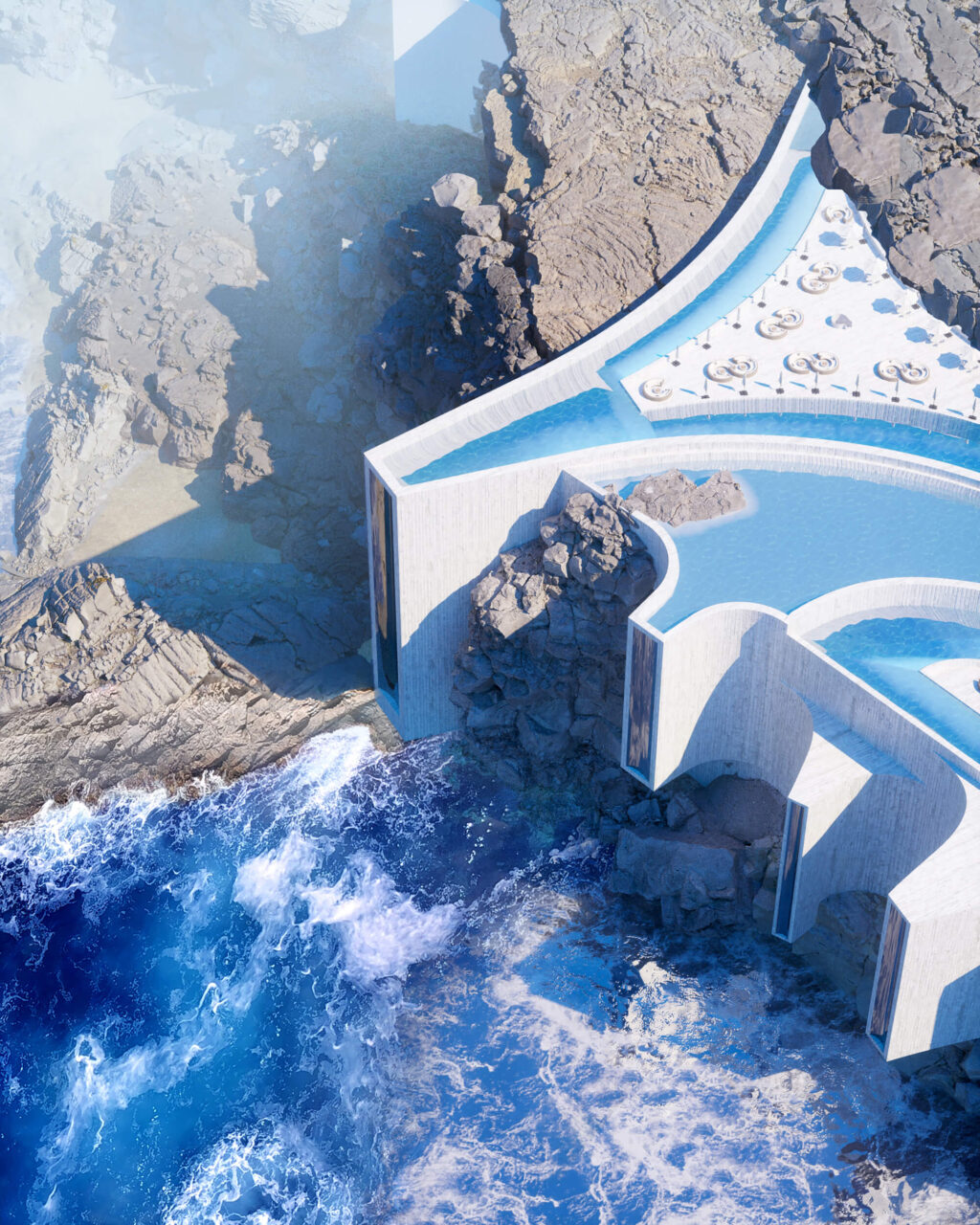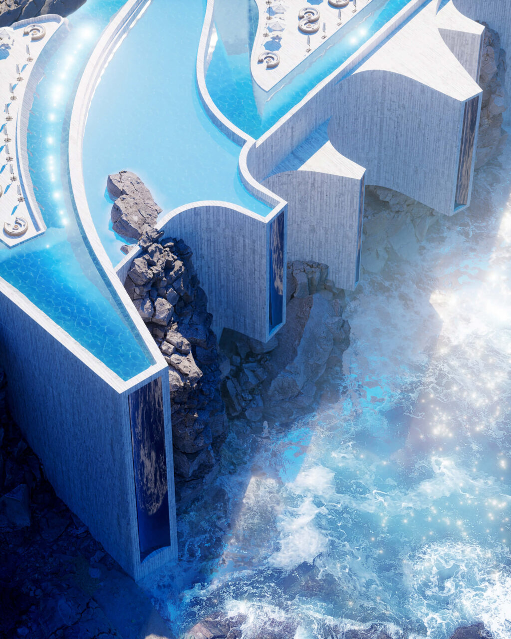 “Θέλαμε οι πελάτες να νιώθουν ότι βρίσκονται στην άκρη του κόσμου από όπου το μόνο που μπορούν να δουν είναι ο ωκεανός. Επειδή το project είναι ακόμα μεταξύ φαντασίας και χαρτιού, δεν έχουμε υπολογίσει τις ακριβείς διαστάσεις του και άλλα επιμέρους στοιχεία. Δεν έχουμε μετρήσει την τοποθεσία ούτε τον αριθμό και τα τετραγωνικά των δωματίων. Πρόκειται για μια έκρηξη αισθήσεων και συναισθημάτων. Εξάλλου, η αρχιτεκτονική δε χρειάζεται να χαρακτηρίζεται πάντα από ρεαλισμό!”, συμπληρώνουν.